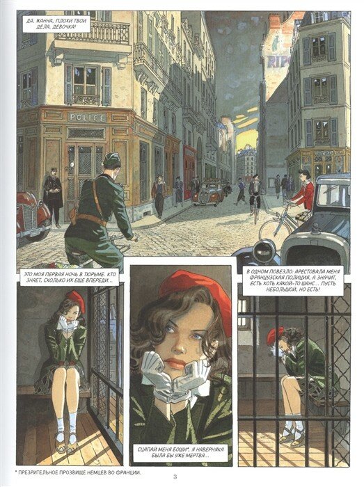 Французские комиксы про Вторую мировую всегда остаются с романтическим оттенком. Авторы погружают нас в будни оккупированного Германией Парижа. Но в романе это не мрачный город, преклонившийся перед захватчиком, а столица, полная надежд на светлое будущее. Ведь скоро придёт помощь от Союзников. История о подполье, о красивом городе, о красивых сильных женщинах. Иллюстрации похожи на стиль американских комиксов о Блэксэде (коте-детективе) с чёткой проработкой архитектуры и персонажей.