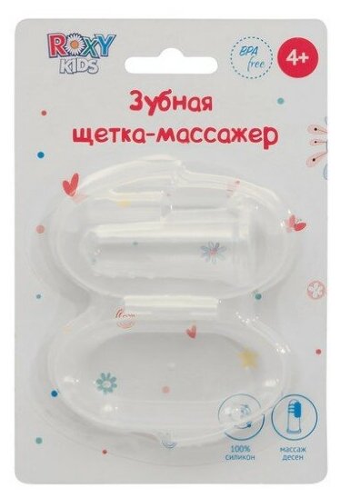Для малышей и их первых зубов идеально подойдет щетка-массажер Roxy-Kids, специально созданная для ухода за полостью рта в таком возрасте. Она не только очищает имеющиеся зубы, но и позволяет избавить кроху от неприятных ощущений, которые неизбежны при прорезывании последующих.Наверняка ситуация знакома каждому молодому родителю: малыш капризничает, грызет все подряд и плохо. Достаточно заглянуть в рот, и вы наверняка увидите набухшие десны, которые беспокоят кроху. Надев на палец щетку-массажер, мама сможет как следует обработать болезненные зоны и облегчить состояние ребенка.