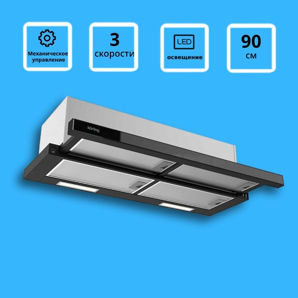 Вытяжка шириной 90 сантиметров - это идеальное решение для просторной кухни. Если вы любите устраивать кулинарные поединки на своей кухне, то 90 сантиметровая вытяжка создана для вас. Она способна справиться с любыми запахами, исходящими от приготовления пищи. Площадь воздухоприемного зонта данной вытяжки подойдет для варочных поверхностей 90, 75, 60,45 сантиметров и меньше.