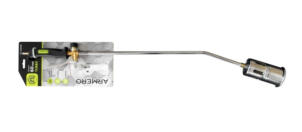 Кровельная горелка Armero A720/080 используется для нагрева и расплавления наплавляемых кровельных материалов. Помимо этого, с помощью кровельной горелки просушивают поверхность, нагревают заготовки для строительных работ, обжигают строительную краску и применяют при всех работах, где требуется подогреть элементы или поверхности. Для подключения кровельной горелки к баллону можно использовать газовый шланг любой длины. Длина горелки 880 мм; Диаметр сопла 60 мм; Турбо сопло; Горелка оснащена винтовым регулятором мощности и рычагом моментального увеличения пламени; В комплекте имеется штуцер для подключения шланга к горелке и присоединения напрямую к баллону или через редуктор низкого давления; Поставляется без газового шланга для присоединения к баллону; Удобная рельефная рукоять предотвращает выскальзывание инструмента; Работает со сжиженным газом при давлении от 0,5 до 3 Бар; Инструкция по применению: Убедитесь, что кран подачи газа на горелке плотно закрыт. Присоедините шланг к горелке с помощью соответствующих гаечных ключей. Присоедините шланг к редуктору давления, а затем к крану. Внимание: проверьте наличие прокладки между редуктором давления и краном газового баллона. Анти-разрывной предохранительный клапан (при его наличии) должен быть расположен между шлангом и редуктором давления. Откройте кран газового баллона. Проверьте герметичность между горелкой и шлангом, и между шлангом и газовым баллоном с помощью подходящего спрея-детектора утечек. При выявлении какой-либо утечки газа закройте баллон и проверьте еще раз прокладки и герметичность. Свяжитесь с вашим продавцом, если проблема не исчезает. Медленно откройте маховик крана (пол-оборота) против часовой стрелки и оставьте пламя вблизи сопла или включите кнопку питания (для моделей с пьезо зажиганием). Откройте кран полностью для использования горелки на полной мощности. После завершения работ всегда закрывайте кран газового баллона первым, а кран горелки вторым. Всегда производите замену пустого газового баллона на новый в хорошо вентилируемом помещении и вдали от любых источников нагревания или пламени. Затем повторите действия с 1 пункта. Внимание! Использовать только с пропаном при давлении от 0,5 до 3 бар. Не используйте редукторы с фиксированной калибровкой для домашнего использования, так как давление будет недостаточным. Используйте только на улице или в хорошо вентилируемых помещениях. После работы сопло очень горячее, поместите его в надежное место вдали от возгораемых материалов. Оборудование должно обслуживаться только у квалифицированных техников, сертифицированных производителем. Используйте только оригинальные детали. Мы рекомендуем использовать горелку с анти-разрывным предохранительным клапаном.