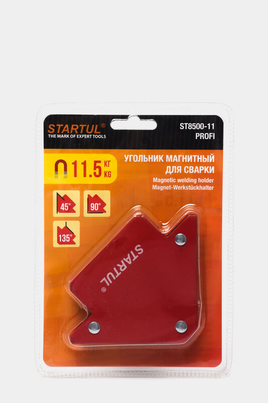 Угольник магнитный для сварки STARTUL PROFI - это незаменимый инструмент для профессионалов и любителей, занимающихся сваркой, пайкой и сборкой металлических конструкций.Этот магнитный угольник обладает высокой удерживающей способностью до 11,5 кг, что позволяет надежно фиксировать металлические детали под различными углами: 45°, 90° и 135°.Угольник оснащен магнитной струбциной, что обеспечивает удобство и безопасность использования. Благодаря этому, вы можете легко и быстро закрепить детали, не опасаясь случайного смещения или падения.Угольник магнитный для сварки выполнен в ярком оранжевом цвете, что делает его заметным на любой рабочей поверхности и облегчает процесс использования.Выбирая угольник для сварки STARTUL PROFI, вы получаете надежный и удобный инструмент, который поможет вам выполнять сварочные работы быстро и качественно.