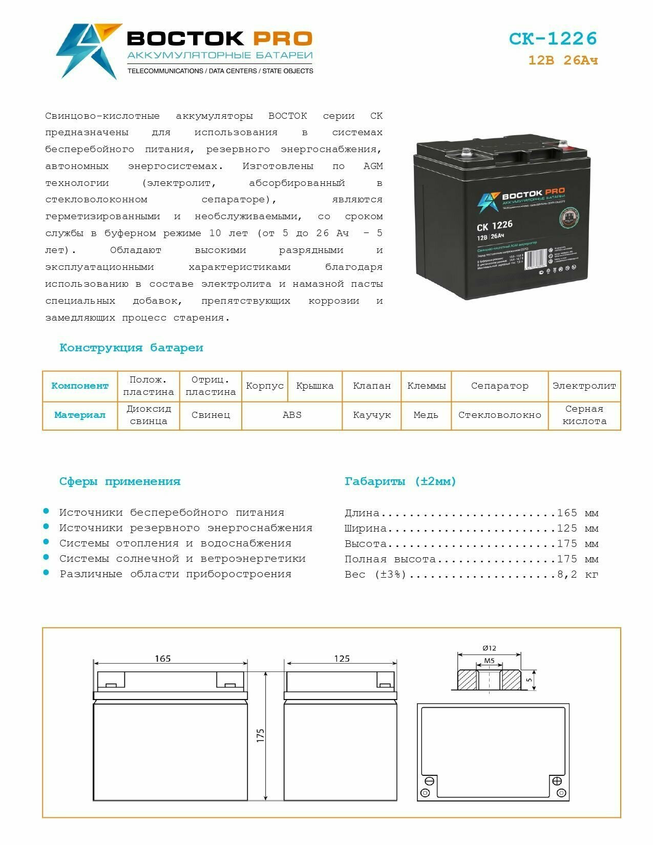 | Форм-фактор АБ по ГОСТ Р МЭК 61056-2-2012 | 12P240A(166х175(177)х125мм) |