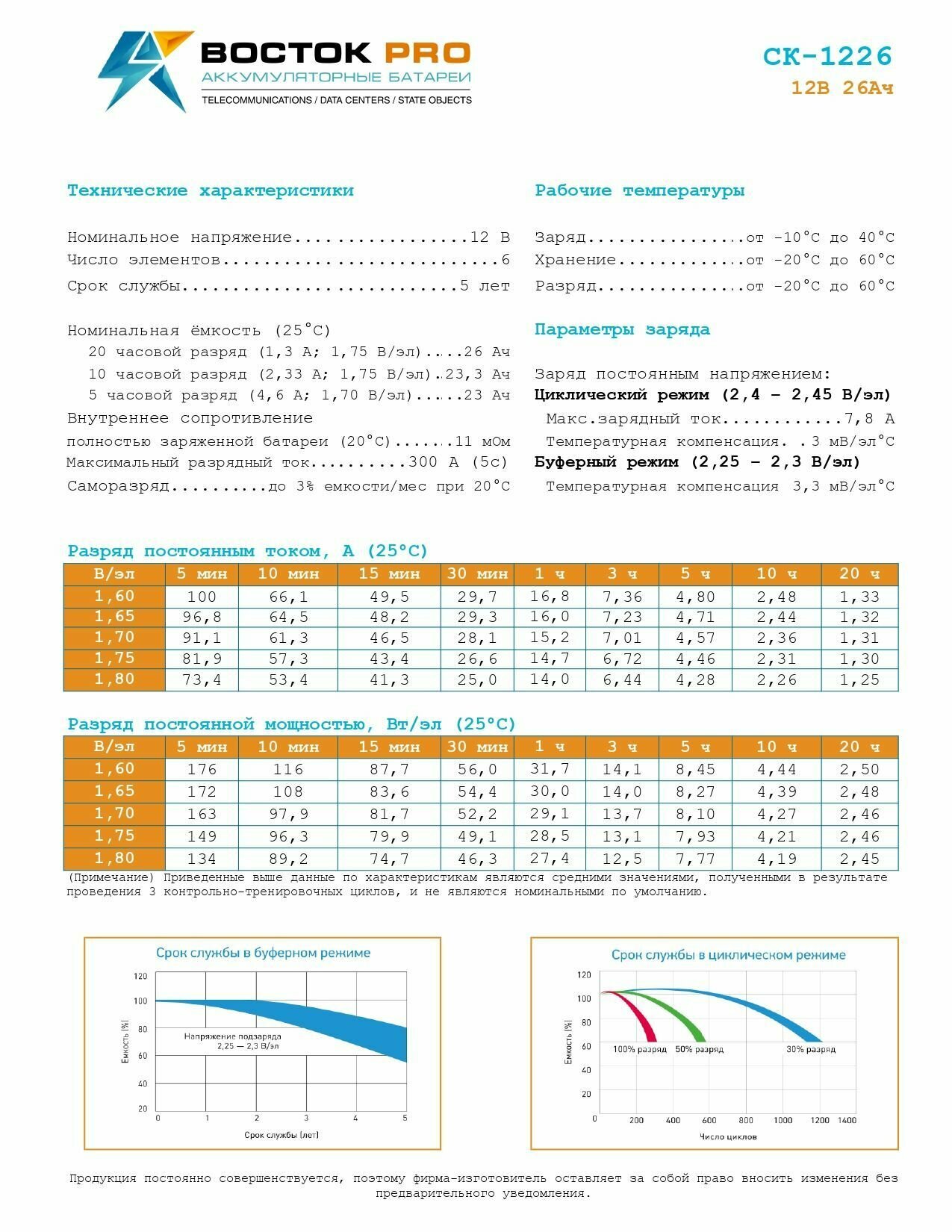 | Номинальная емкость, заявленная производителем | 26 Ач |