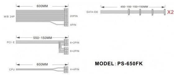| Длина 4 pin IDE (Molex) | 450 мм |