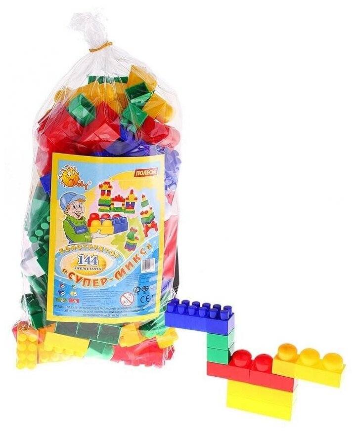 Компания «Полесье» производит широкий выбор развивающих конструкторов. В набор Супер-Микс входят блоки двух видов, поэтому строить крепости и домики могут даже малыши. У ребёнка формируется понимание, что предметы бывают разных цветов, размеров и форм. Одновременно развиваются пространственное мышление, воображение, мелкая моторика рук.