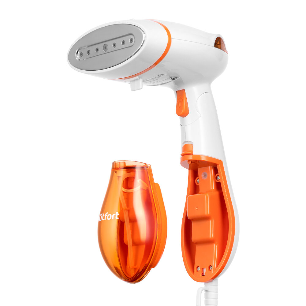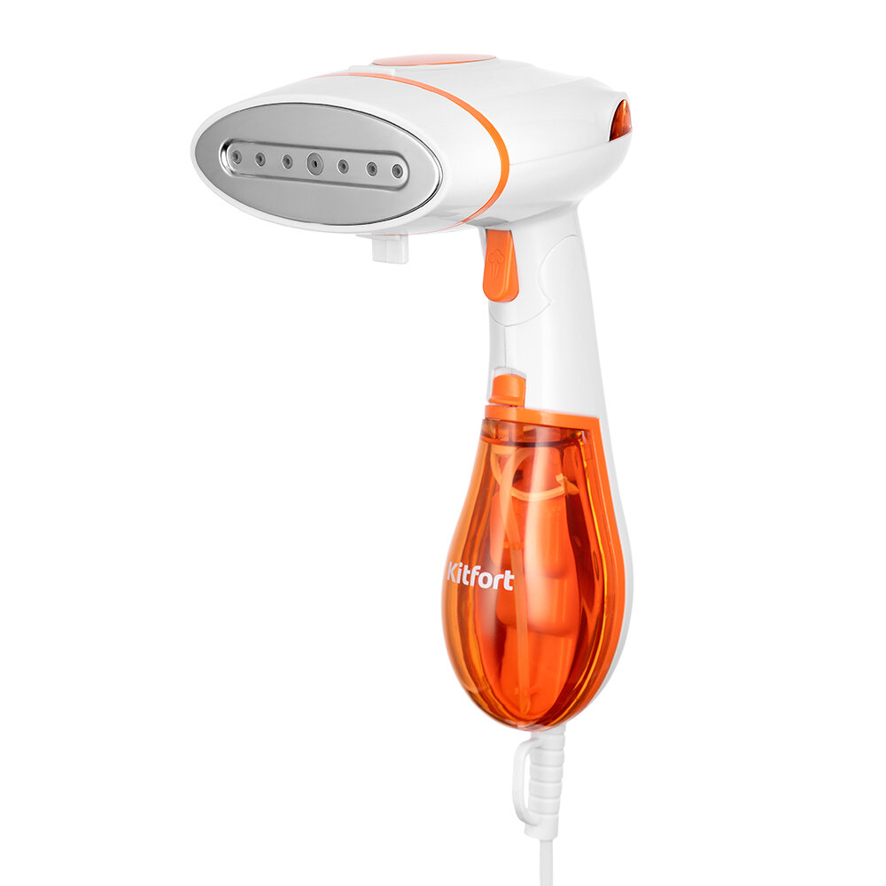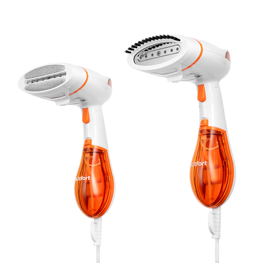 Ручной отпариватель Kitfort – отличная замена обычному утюгу, которая позволит оперативно привести в опрятный вид одежду, в том числе с различной сложной отделкой, и висящие на карнизе шторы, а ещё продезинфицировать обивку мебели и кровати. Кроме того, модель можно использовать и горизонтально – в режиме сухой глажки.