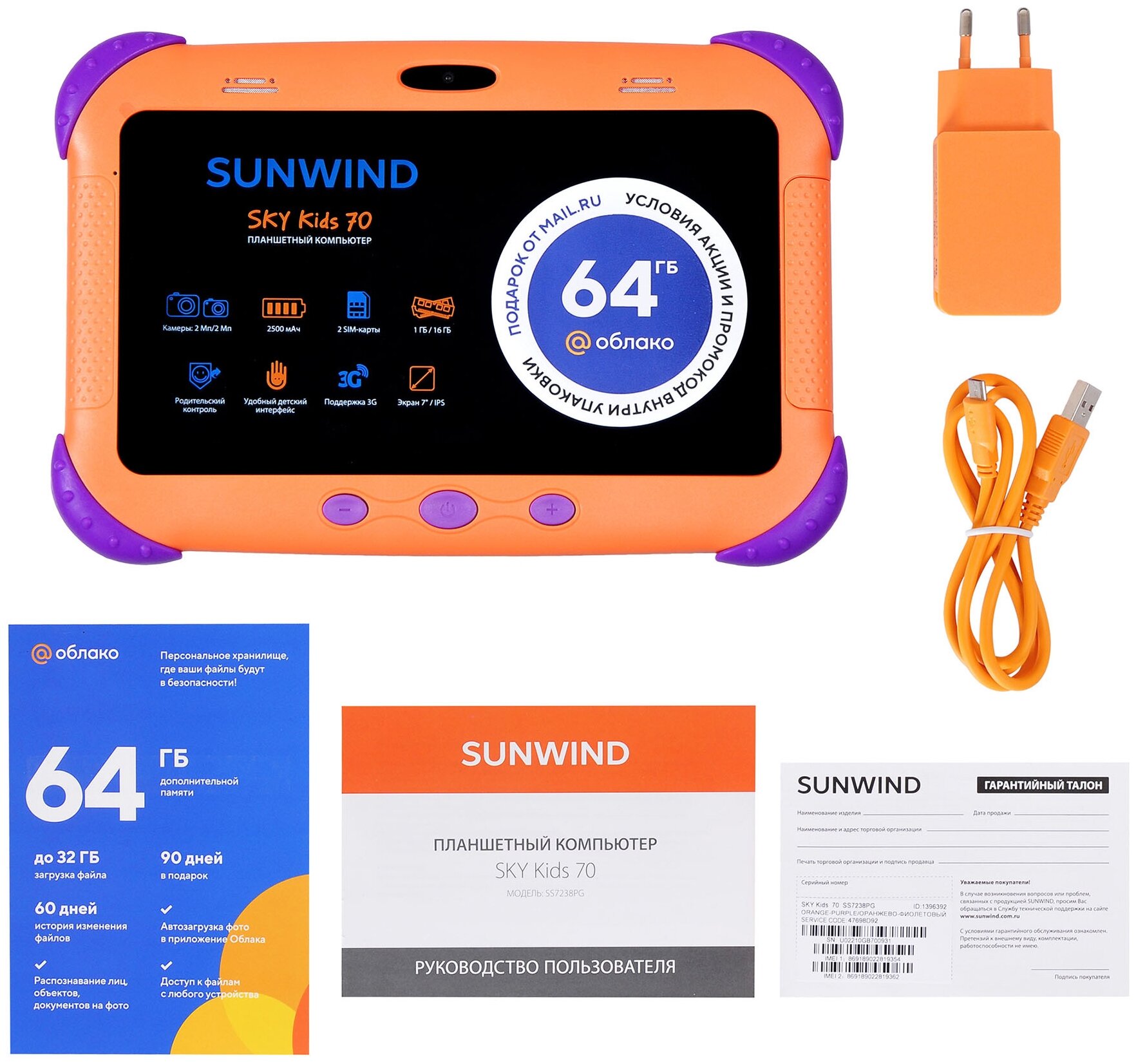 Детский планшет SUNWIND SKY Kids 70 1GB 16GB 3G Android 10.0 Go разноцветный [ss7238pg ]