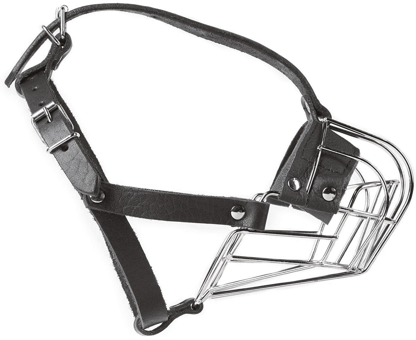 Безопасный, удобный и очень прочный металлический намордник для собак.
