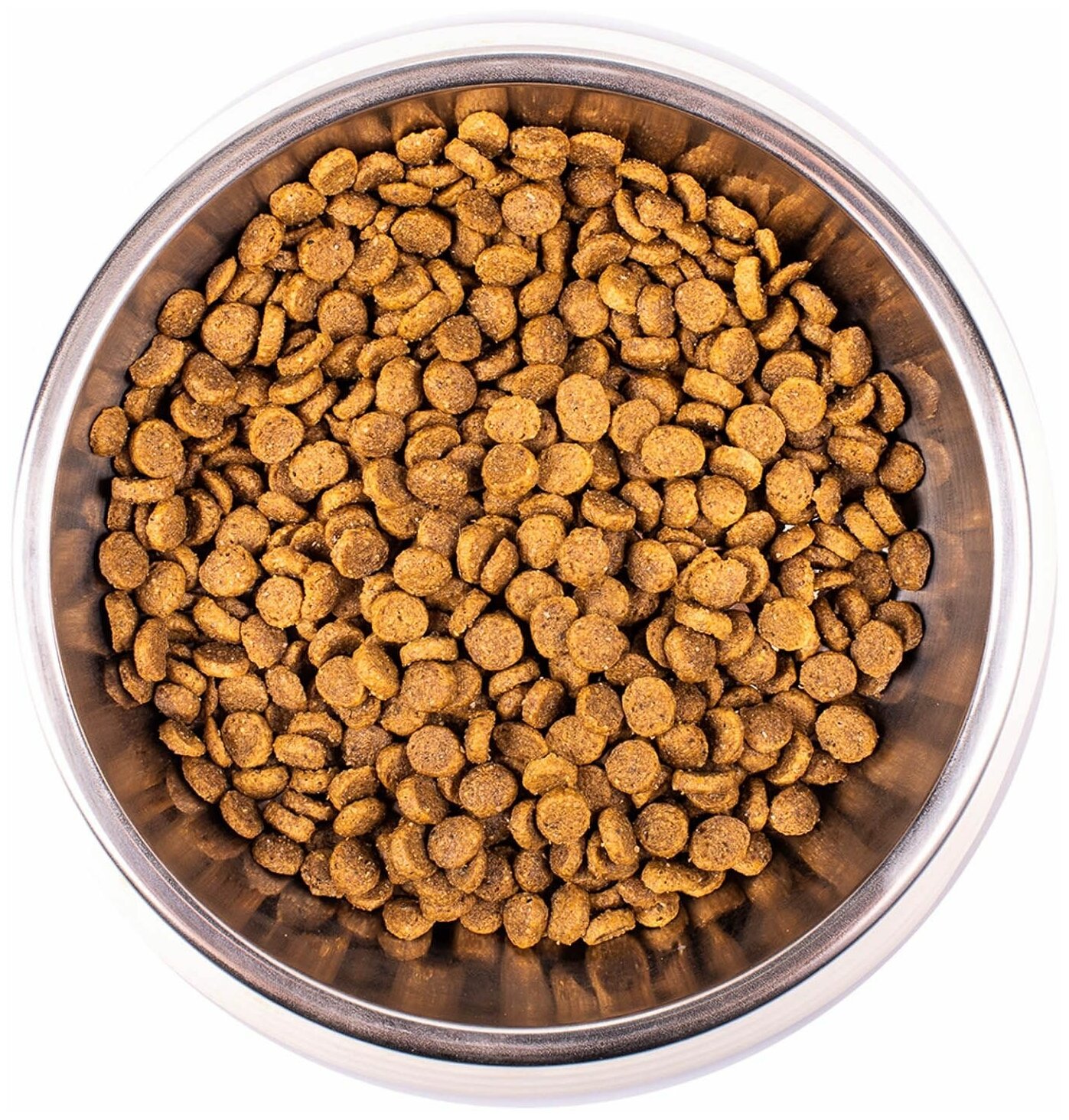 | Состав | Ингредиенты: курица (дегидрированная 26%, свежая 10%), рис, животный жир (куриный жир 99,6%, консервированный с помощью натуральных антиоксидантов), кукуруза, гидролизованный животный белок, сухая свекольная пульпа, кукурузная глютеновая мука, яичный порошок (с высоким содержанием полноценного белка), рыба (дегидрированный лосось), рыбий жир (масло лосося), пивные дрожжи (источник МОС и витамина В12), нерастворимые волокна гороха, таурин, КОС (ксилоолигосахариды 3 г/кг), гидролизованные дрожжи (МОС), юкка Шидигера, шиповник. |