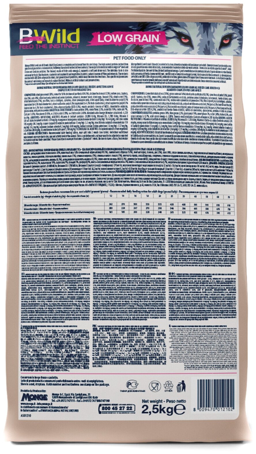 Корм Monge Dog BWild Low Grain низкозерновой для взрослых собак всех пород из мяса гуся 25кг Unknown (70012102)