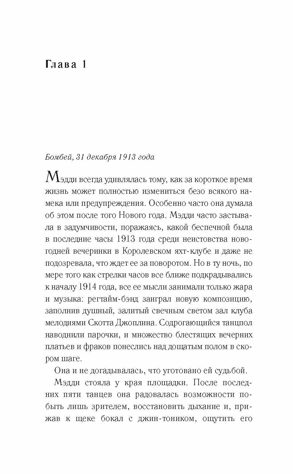 Но надвигается война, и у Люка, как у многих других мужчин, нет иного выбора, кроме как идти сражаться и сгинуть на поле боя. Мэдди получает похоронку… но молодая женщина все же цепляется за обещание, которое дал ей Люк: они обязательно снова встретятся в Бомбее…