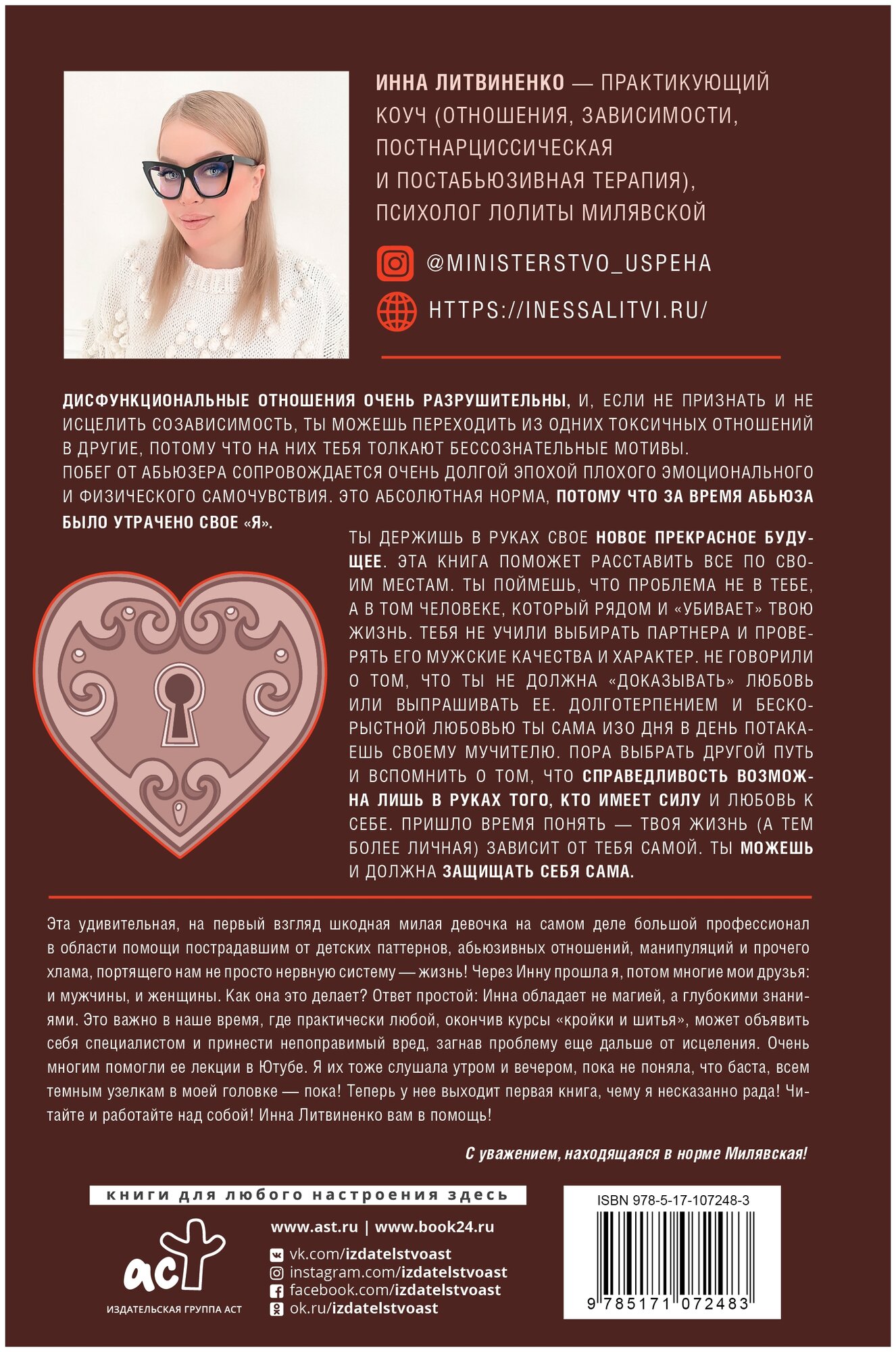 Получила книгу замечательной Инны Литвиненко, проходила ее вебинары и она помогла мне выйти из деструктивных отношений. Написано несколько сумбурно, некоторые вещи нужно читать, допусти м :"жертвы эмоционального насилия часто игнорируют поведение своих обидчиков, поскольку они кажутся несчастными, отвергнутыми, брошенными, обиженными в детстве. Ты стараешься зациклится только на положительных эмоциях. Стремление выжить заставляет женщину искать даже самый крошечный намёк на нежность и тд в поведении абьюзера". Поняла бы я без вебинаров и блога о каком стремлении выжить речь и от чего оно вообще? Нет, точно бы не поняла. Очень быстро автор переходит с одной мысли на другой, буквально два предложения об одном, другие о другом. Есть информация с платных вебинаров, не мало. Мне книга очень нравится, я ещё в процессе чтения, бумага тонкая, но не просвечивает, 317 страничек.