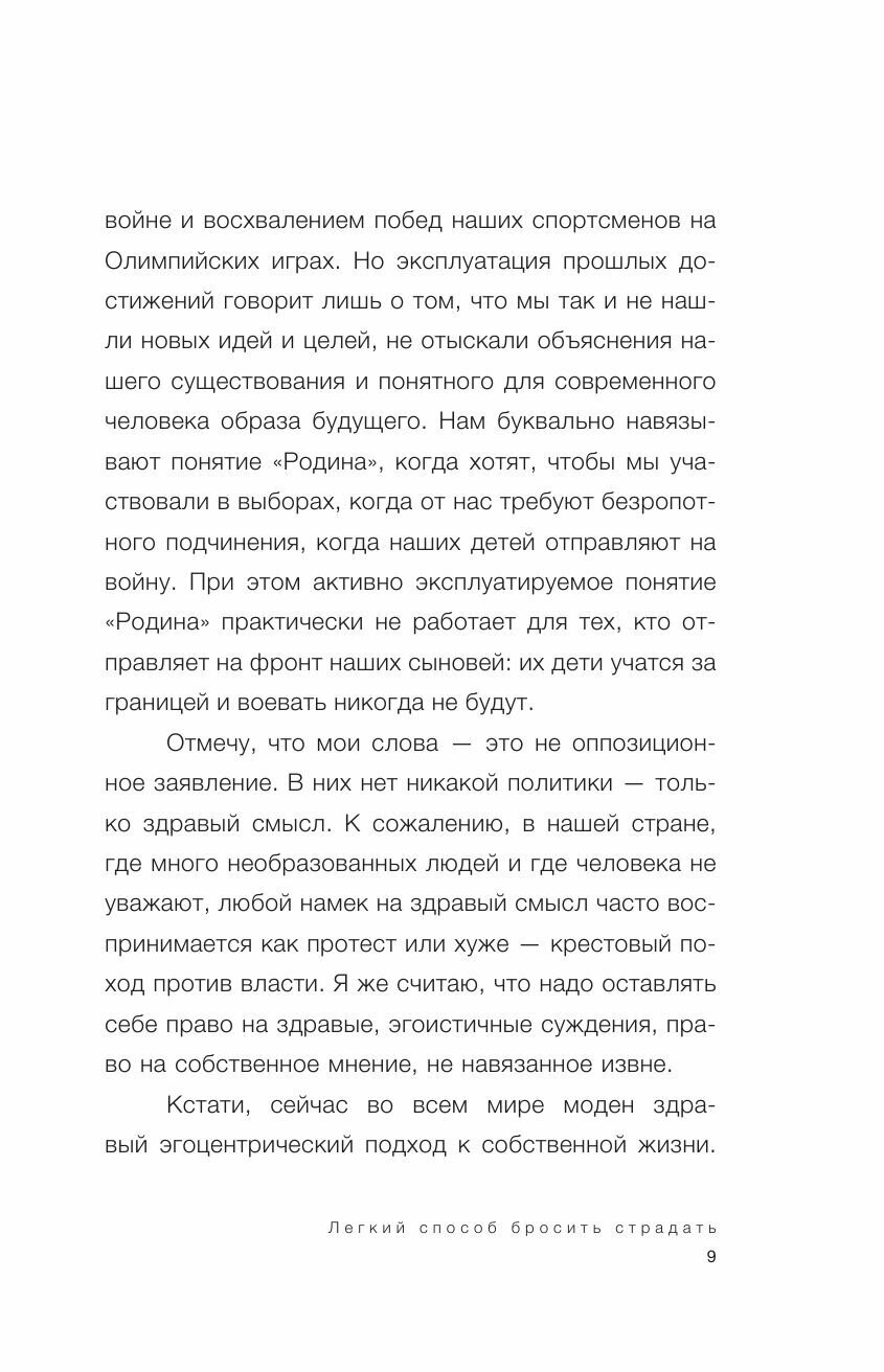 Эта книга-срез жизненных ориентиров автора.Заветного рецепта, как перестать страдать там скорее нет- это трудотерапия и помощь ближнему.Это солянка из взглядов на любовь, семью, друзей, воспитание детей и даже политику.Эмоционально насыщенная и энергичная книга, много целей, установок Либо-Либо. Используя мужчин как трамплины в развитии и карьере, автор пытается убедить читателя, что всего достигла сама.