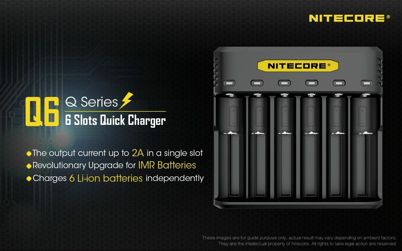 | Комплектация | зарядное устройство Nitecore Q6, кабель электропитания + EU вилка для зарядки от сети 220V, инструкция пользователя |