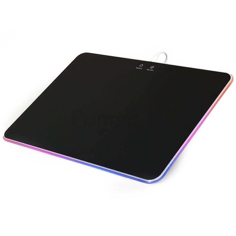 Твёрдый коврик для компьютерной мышки с подсветкой. Прочная нейлоновая плёнка обеспечивает лёгкое скольжение мышки по поверхности. Пластиковая основа позволяет разместить коврик даже на неровной поверхности. Вспененная резиновая подложка препятствует смещению самого коврика. Переключаемая RGB подсветка имеет несколько профилей, сменяемых нажатием кнопки SWITCH: красный, жёлтый, зелёный, голубой, синий, фиолетовый, белый, переливающийся (изменение яркости - нажатие On|Off, отключение подсветки - удержание On|Off).Особенности:Покрытие для быстрого скольжения;7 профилей RGB подсветки;Смена яркости;Отключение подсветки;Съёмный кабель питания micro USB.