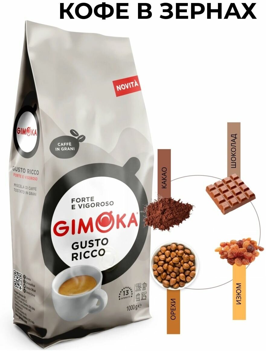Кофе зерновой GIMOKA Gusto Ricco средняя обжарка 1000 гр Gusto Ricco, 1000 гр.