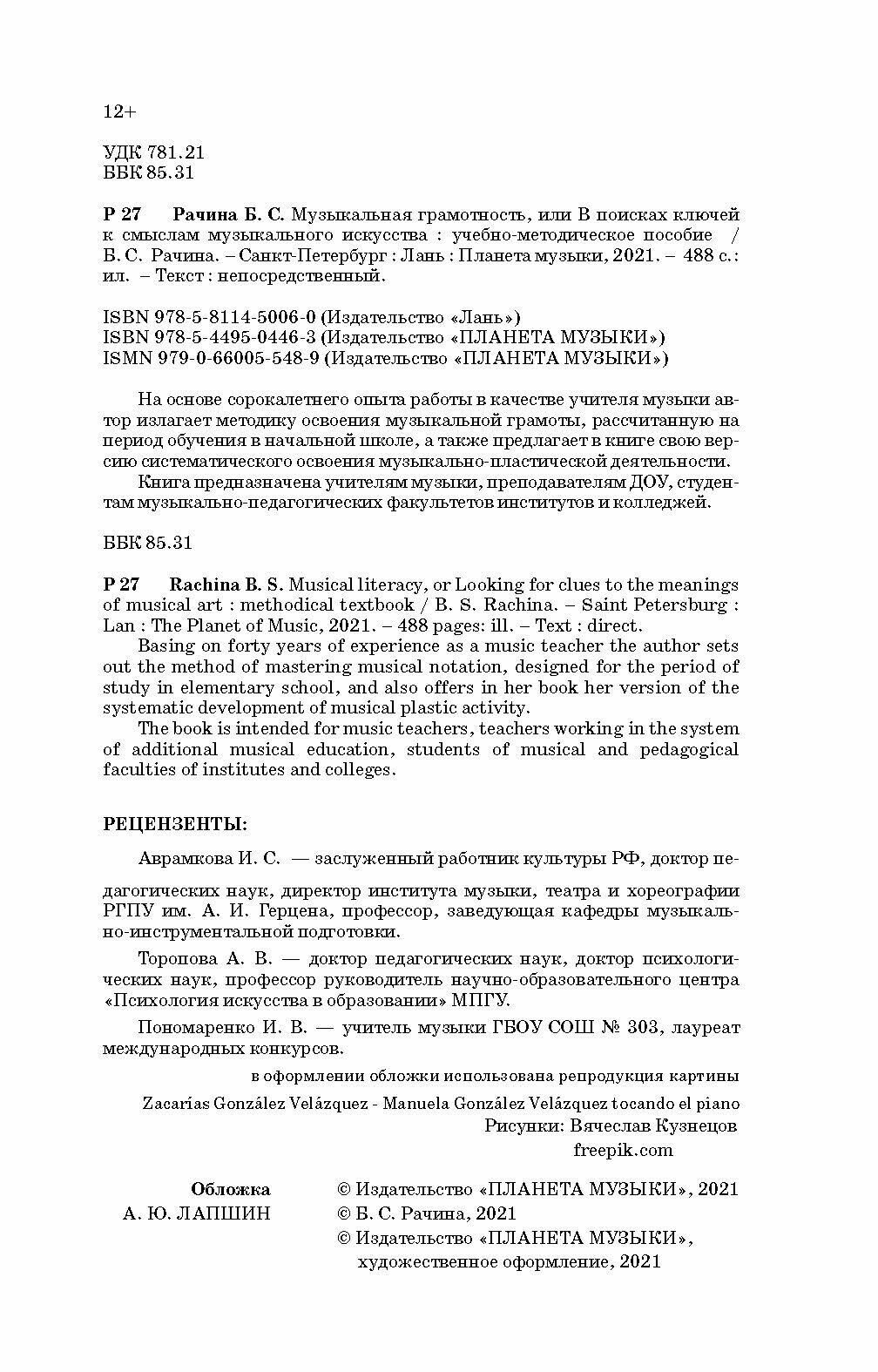 Музыкальная грамотносили В поисках ключей к смысл (Белла Рачина); Издательство «Планета музыки», 2021