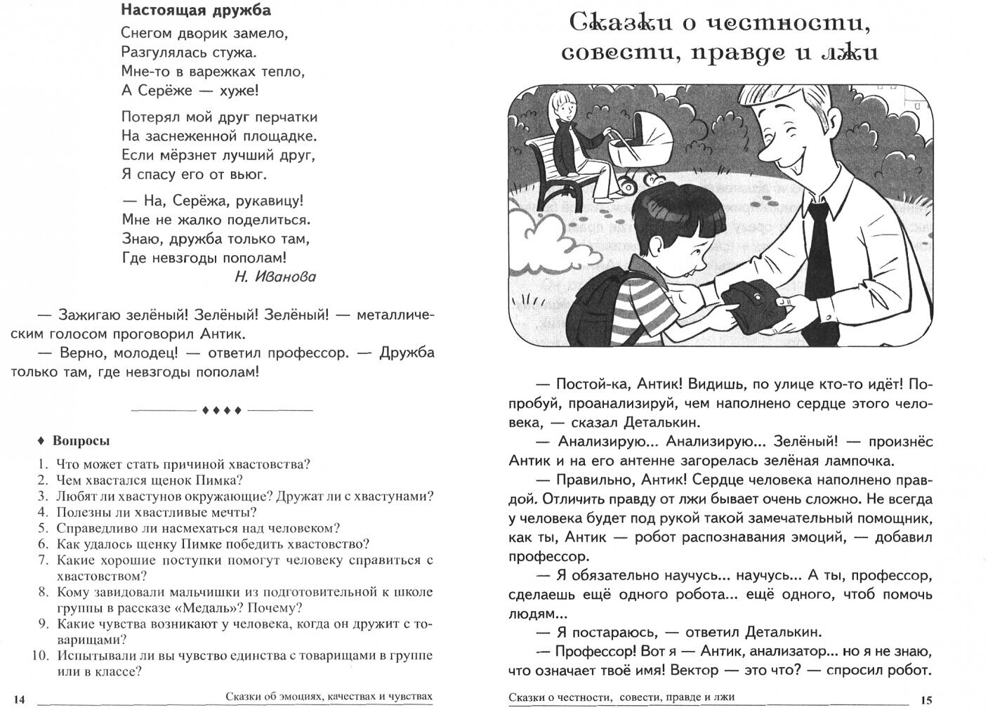 Я педагог в детском саду, купила книгу для занятий со средней группой. Под сказки делаем с детишками спектакль. Тексты и стихи написаны доступным языком, о простых, но важных для ребёнка ценностях- правде и лжи, жадности, лени. И персонажи главные детей ведут по книге - профессор и робот Атик - интересны современным детям. Мы даже сделали из картона маску для робота с такими антеннами! Рекомендую к чтению и родителям и педагогам.