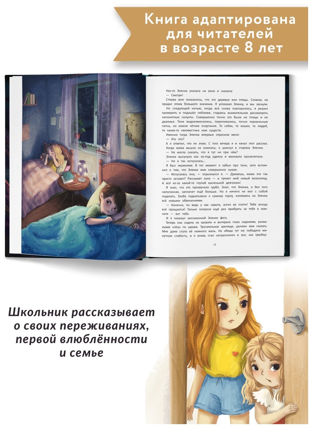 Повесть написана от лица школьника и рассказывает о его переживаниях, мыслях, первой влюблённости и семье, которая преодолевает любые трудности вместе.