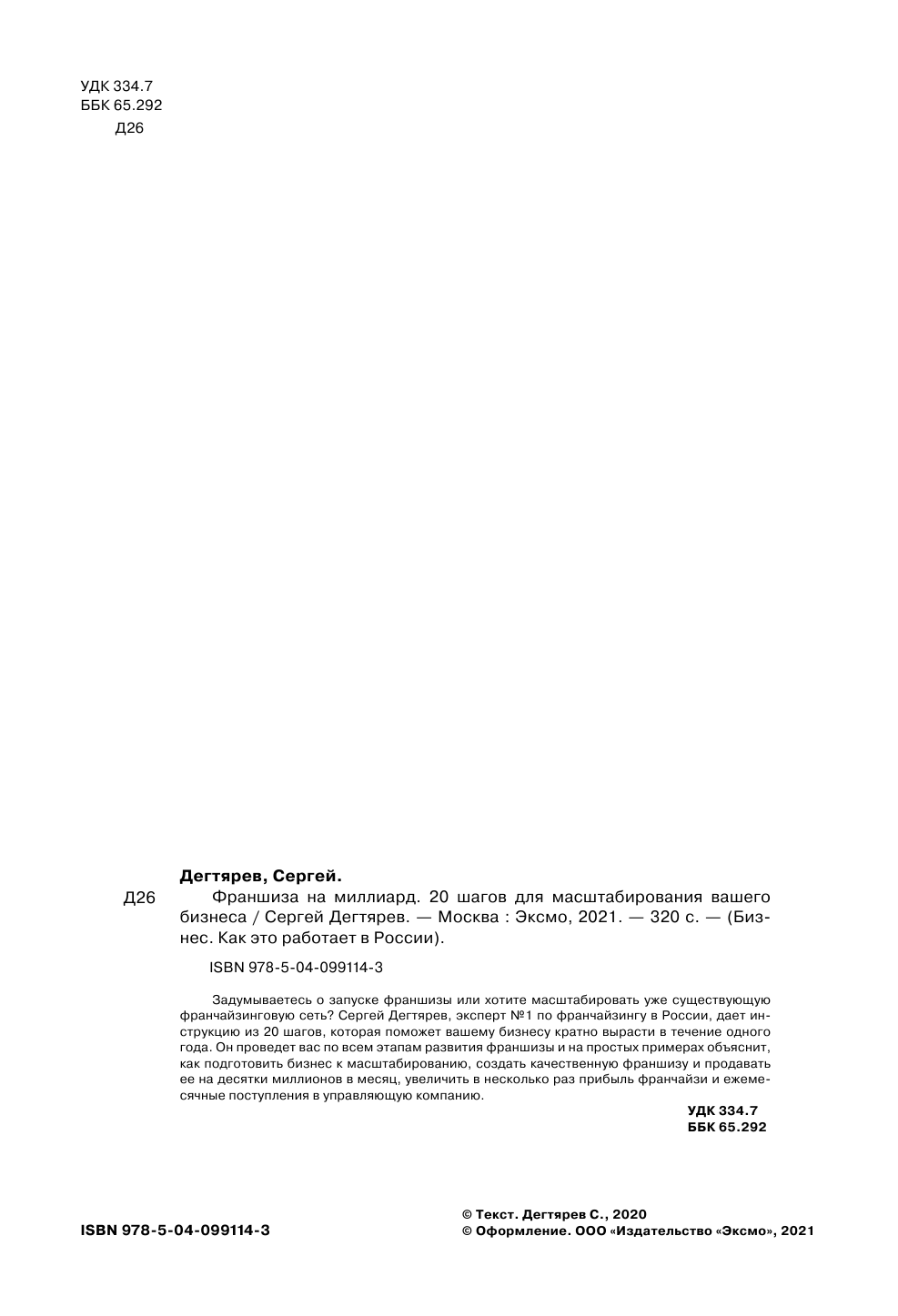 Франшиза на миллиард. 20 шагов для масштабирования вашего бизнеса (Сергей Дегтярев); Эксмо, БОМБОРА, 2021