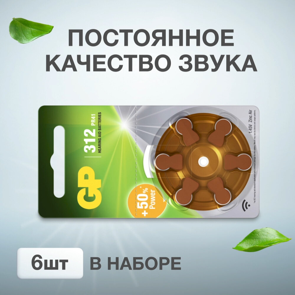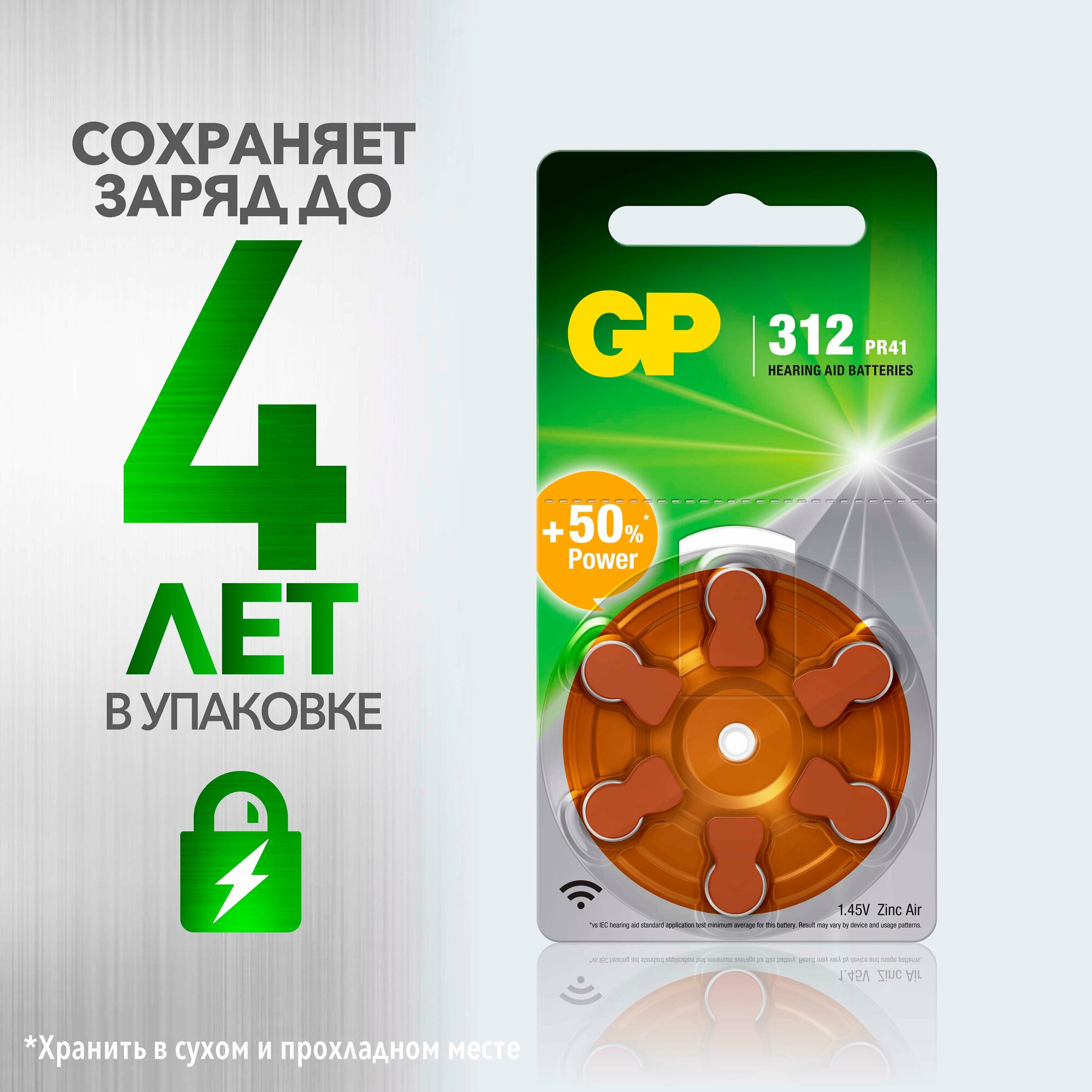 Батарейки GP ZA312FRA-9D6 входят в категорию специальных элементов питания, то есть имеют узкую сферу применения. Миниатюрные дисковые батарейки серии GP ZA10 – 675 питают энергией чувствительные слуховые аппараты.Эти медицинские приборы необычайно энергозатратны и, соответственно, требуют источники питания большой ёмкости. По этому параметру бесспорные лидеры на сегодняшний день – цинково-воздушные аккумуляторы. Их плотность в 2-3 раза выше, чем у литиево-ионных батареек. Энергоёмкость некоторых модификаций достигает огромных величин – до 450 Вт*ч/кг, при этом потенциальная плотность может составлять до 1350 Вт*ч/кг.Электрохимическая система этих батареек уникальна. Для выработки электроэнергии они черпают кислород из воздуха, для чего прямо на поверхности элементов расположены маленькие отверстия. В упаковке они залеплены специальной плёнкой, которую перед началом работы с батарейками следует аккуратно удалить. Кислород вступает в реакцию с электролитом – гидроксидом калия, который характеризуется очень