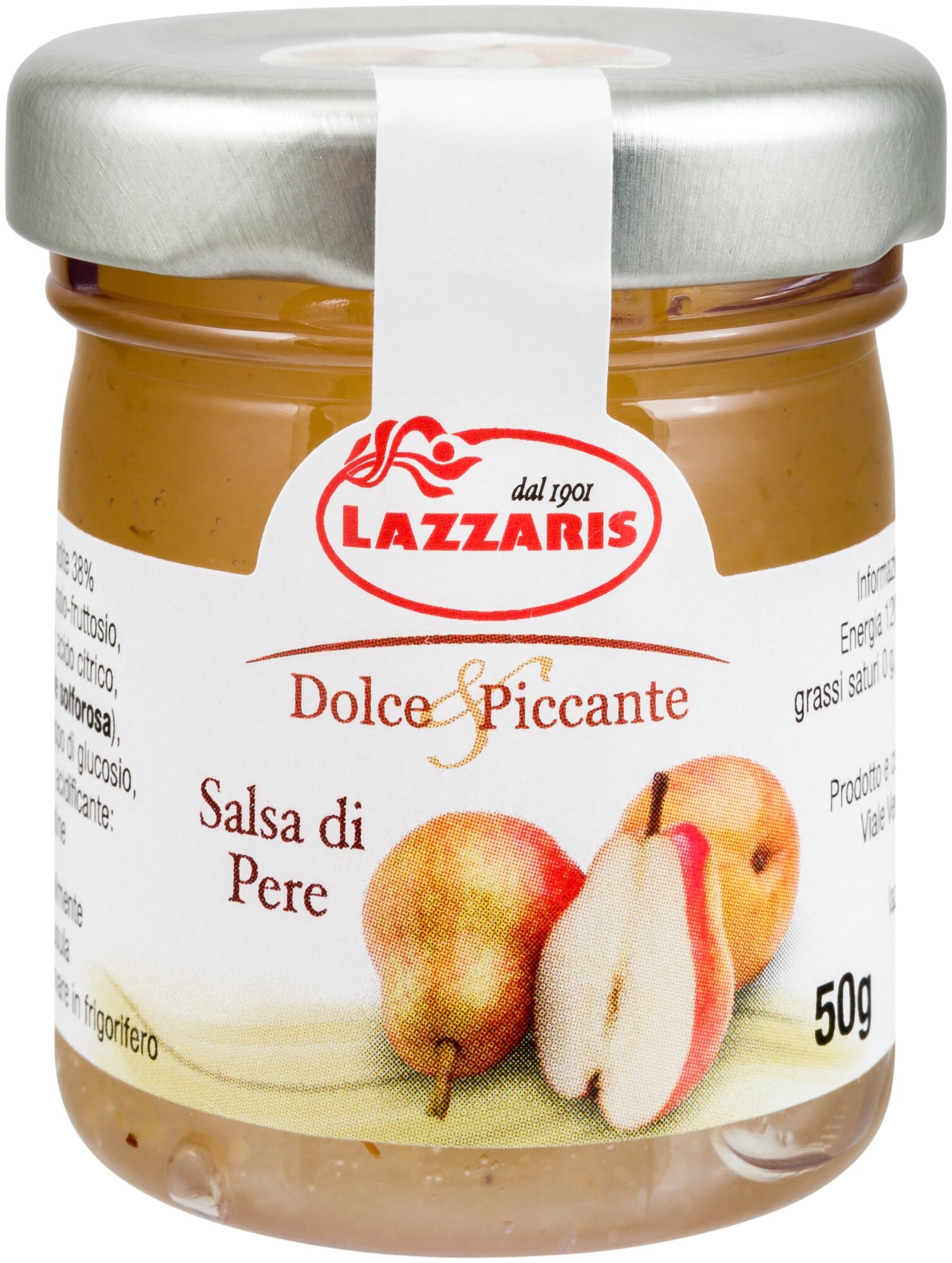 Состав: соус из груш: засахаренные груши 38% (груши, сироп из глюкозы-фруктозы, сахар, регулятор кислотности: лимонная кислота, антиокислитель: диоксид серы), сахар, вода, сироп глюкозы, ароматизатор: горчица, ароматизаторы, регулятор кислотности: лимонная кислота;