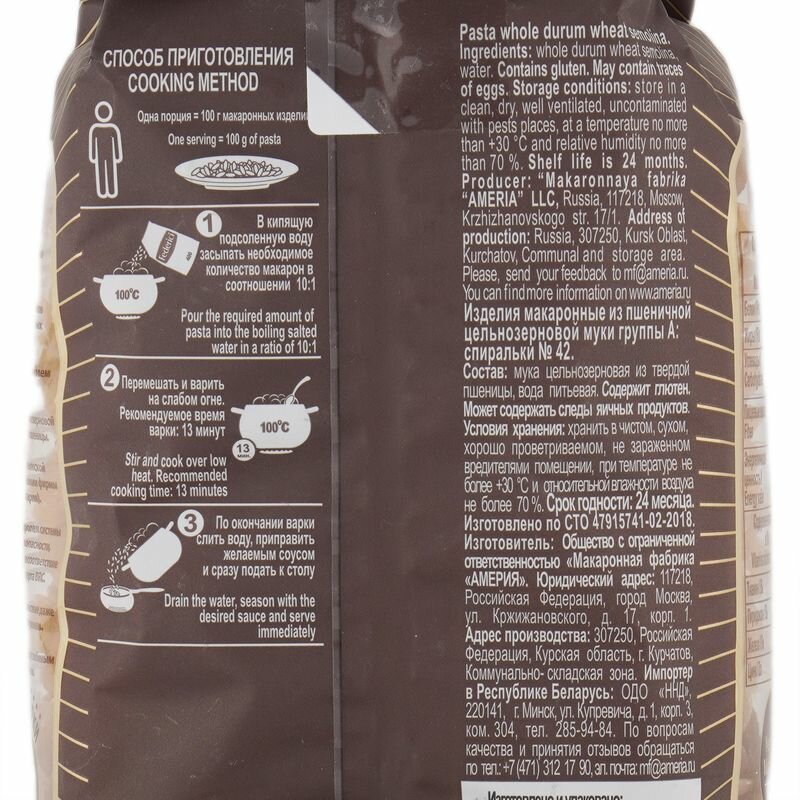 | Производитель | ООО "Макаронная фабрика "Америя" |