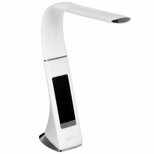 лампа стильная и удобная и на рабочем столе совсем не занимает места, а при помощи гибкой стойки можно направлять свет под разным угломи даже с поворотом в разные стороны. Освещение включается лёгким прикосновением.