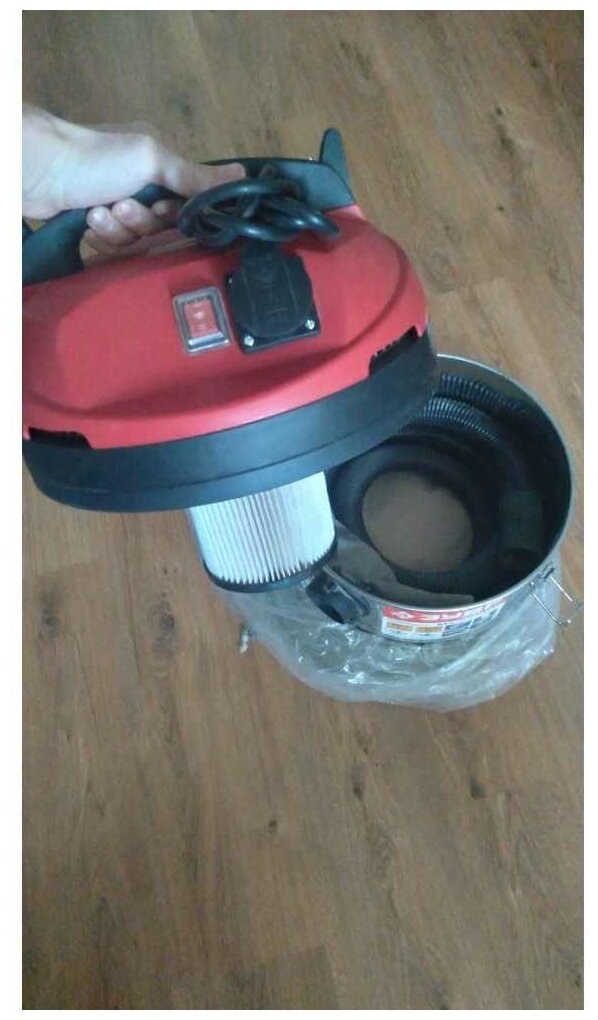 Хороший пылесос за сравнительно небольшие деньги. В нем есть все что надо для использования в условиях строительства и крупного ремонта. Использую при укладке напольных покрытий. Перед укладкой в основном покрытий ложащихся на клей проливаю водой и прохожу пылесосом и все впорядке после высыхания пыли нет. Меня все устраивает мощьный компактный, расходники есть в продаже или под заказ в любом строительном магазине. Гарантия 5 лет.