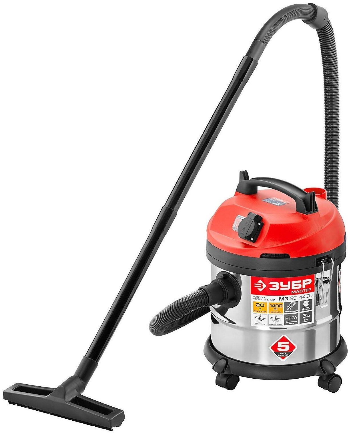 Сервис сравнения цен СкидкаГИД предлагает сравнить цены на товар «Строительный пылесос для сухой и влажной уборки ЗУБР ПУ-20-1400 М3»
