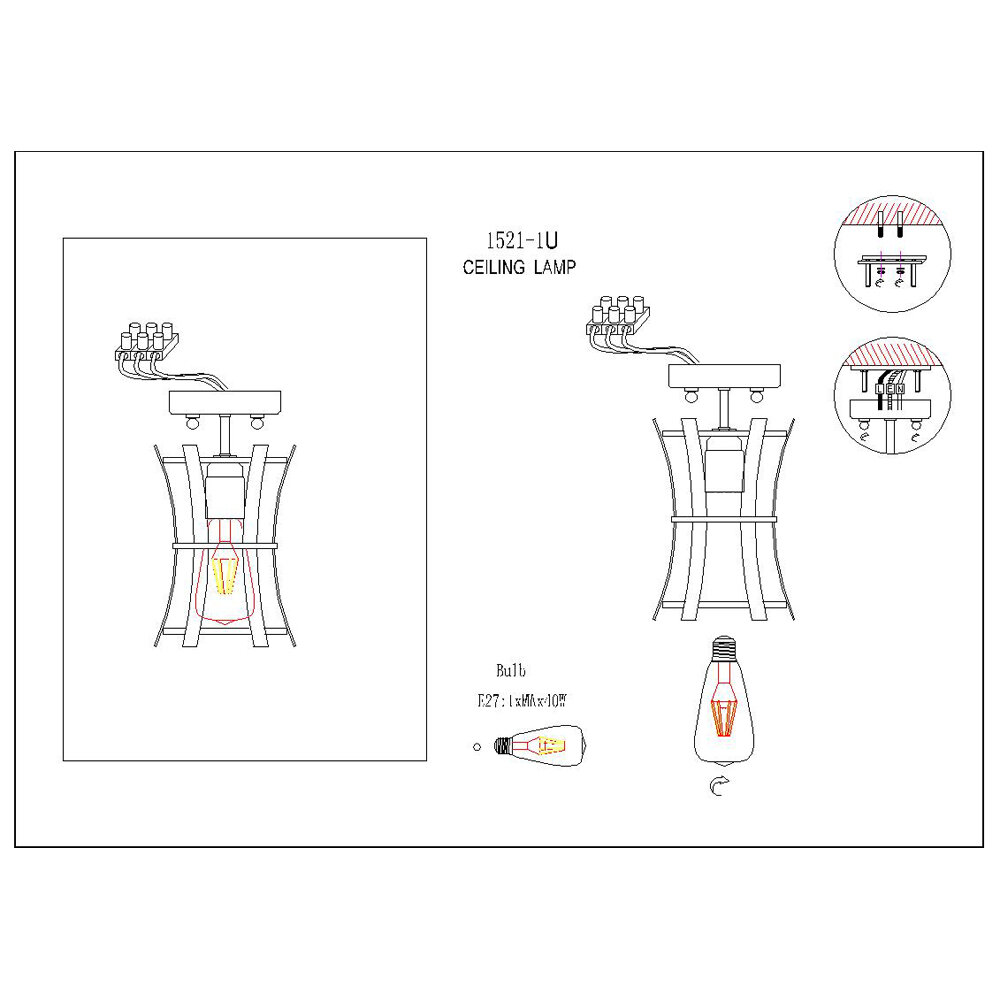 | Место установки | На потолок |