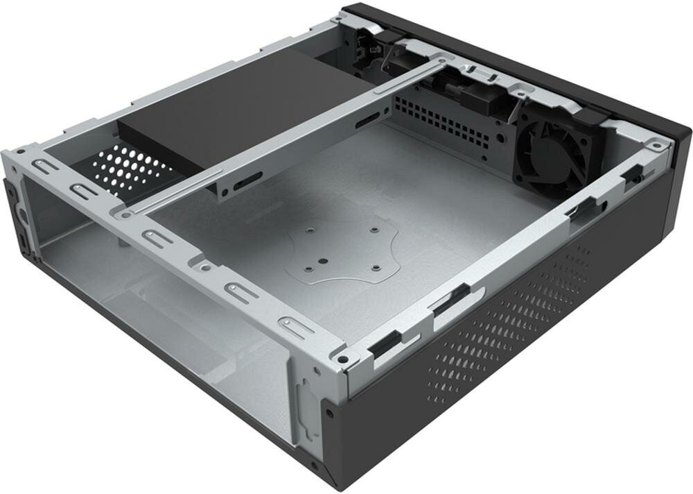 Корпус mini-ITX Powerman 6133715 U3*2 front fan 4cm HDD frame Upper type+ "L"+"I" types 120W adapter GM-120 DC-ATX Mini ITX ME100S-BK