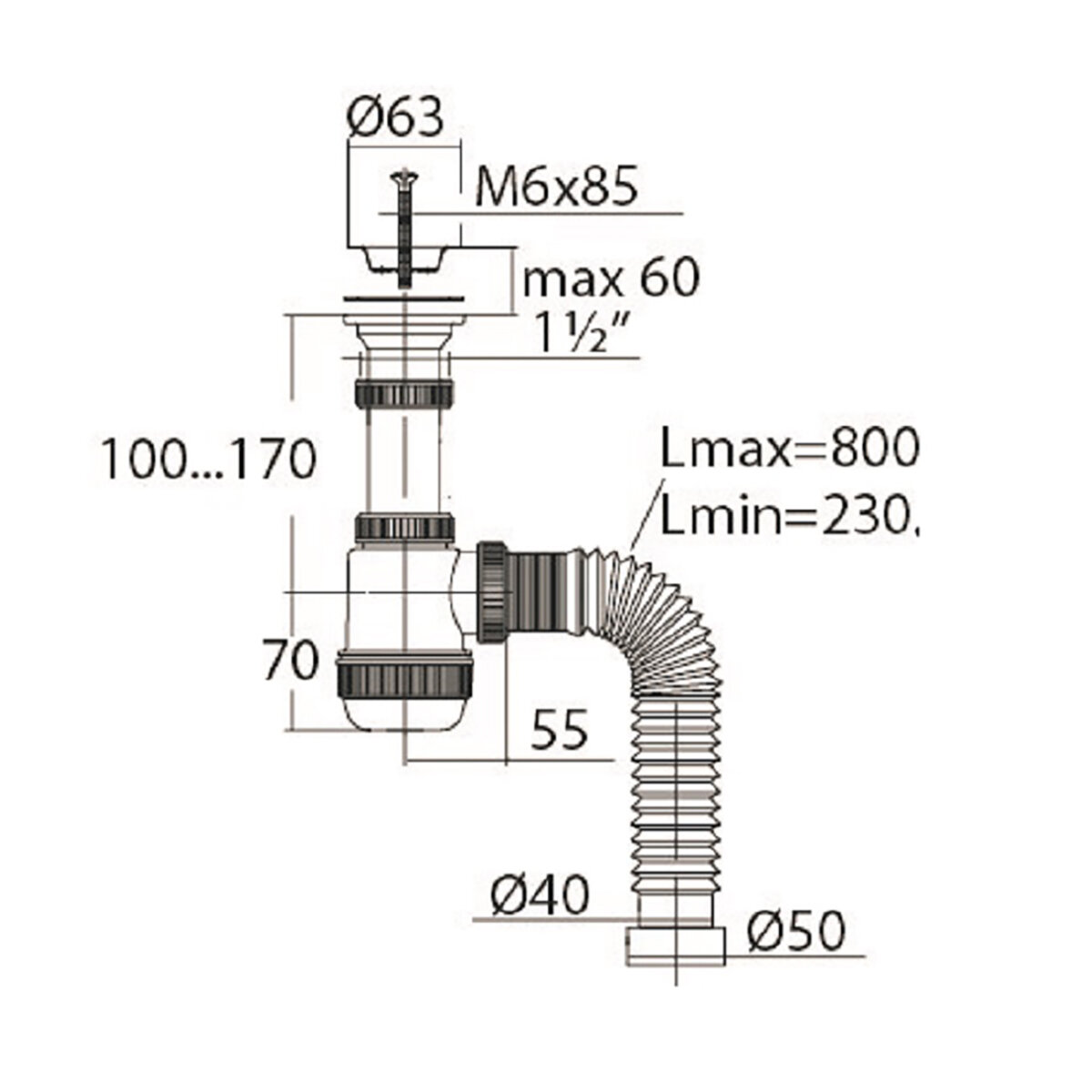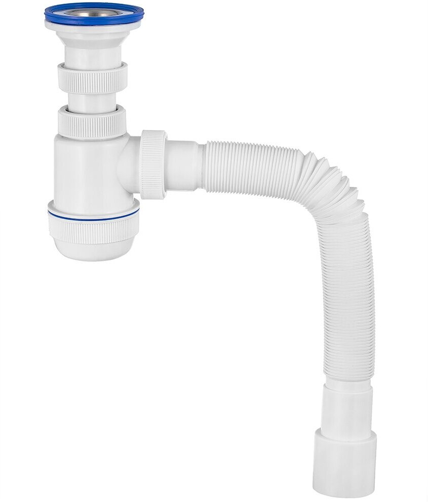 Сифон ЭЛИТ предназначен для отвода воды из нержавеющих и эмалированных моек, а также чугунных и фаянсовых раковин.