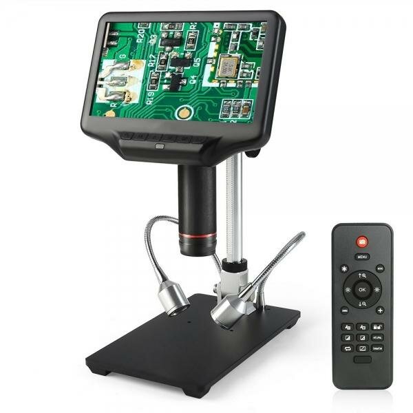 | Комплектация | ЖК-экран, штатив, основание с зажимами, осветители на гибких держателях, инфракрасный пульт дистанционного управления, ультрафиолетовый фильтр, кабель питания с переключателем и регулятором яркости подсветки, кабель HDMI, сетевой адаптер, инструменты и крепеж, инструкция по эксплуатации и гарантийный талон |