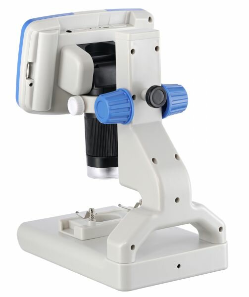 Levenhuk – цифровой микроскоп с возможностью фото- и видеозаписи. Он дает увеличение в диапазоне от 7 до 200 крат, позволяет работать с образцами любой степени прозрачности, а также не требует подключения к сети. Микроскоп может использоваться для изучения насекомых, образцов растений и готовых микропрепаратов, а также поможет в любимом хобби, если оно связано с техникой, электроникой или моделизмом. Прибор обеспечивает увеличение в диапазоне от 7 до 200 крат, картинка выводится на встроенный ЖК-экран с диагональю 5 дюймов. Экран передает цветное изображение и может быть отклонен на небольшой угол для более удобной работы. Кнопки управления микроскопом находятся прямо под экраном, но в комплекте есть также и беспроводной пульт дистанционного управления.