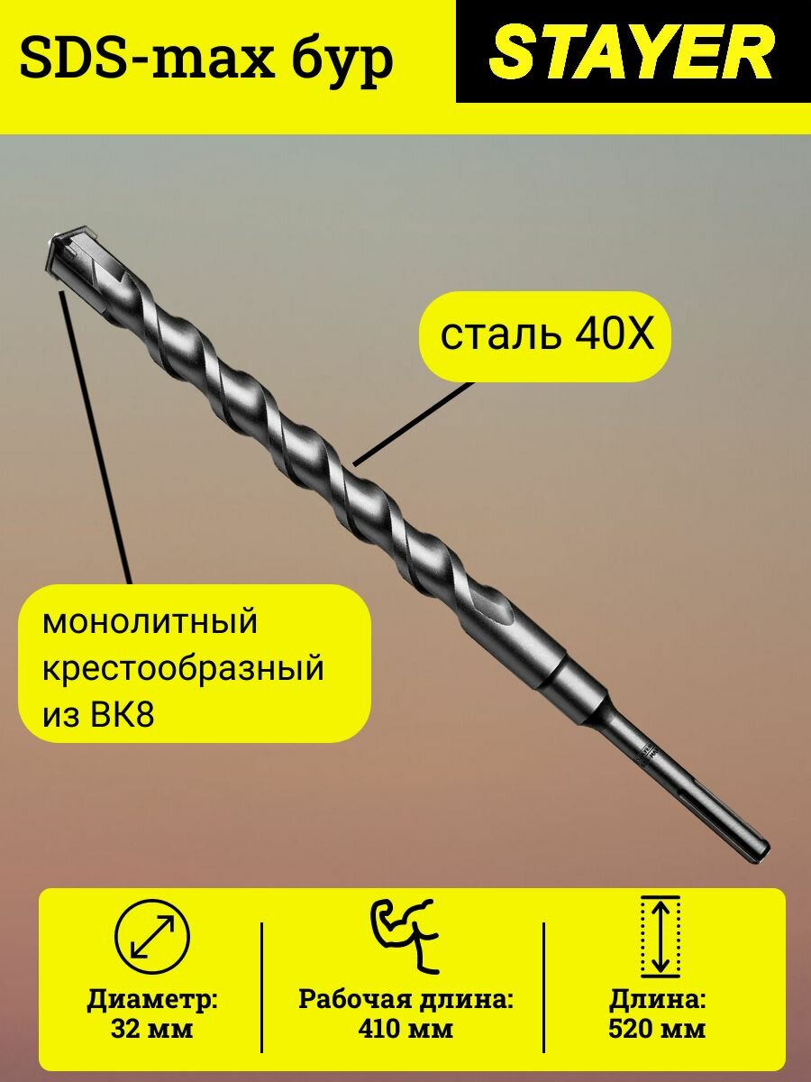 Бур Stayer 29370-410-32 SDS-max 32 x 410/520 мм