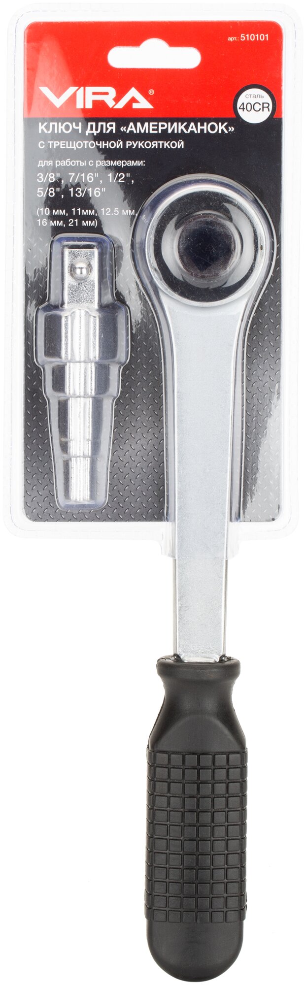 Ключ для американок с трещоточной рукояткой VIRA выполнен из высокоуглеродистой стали.