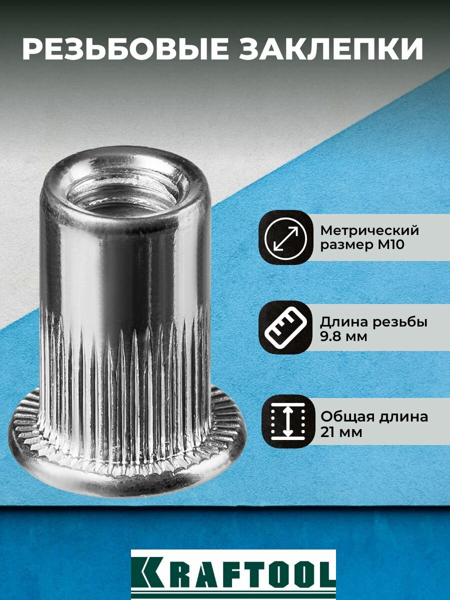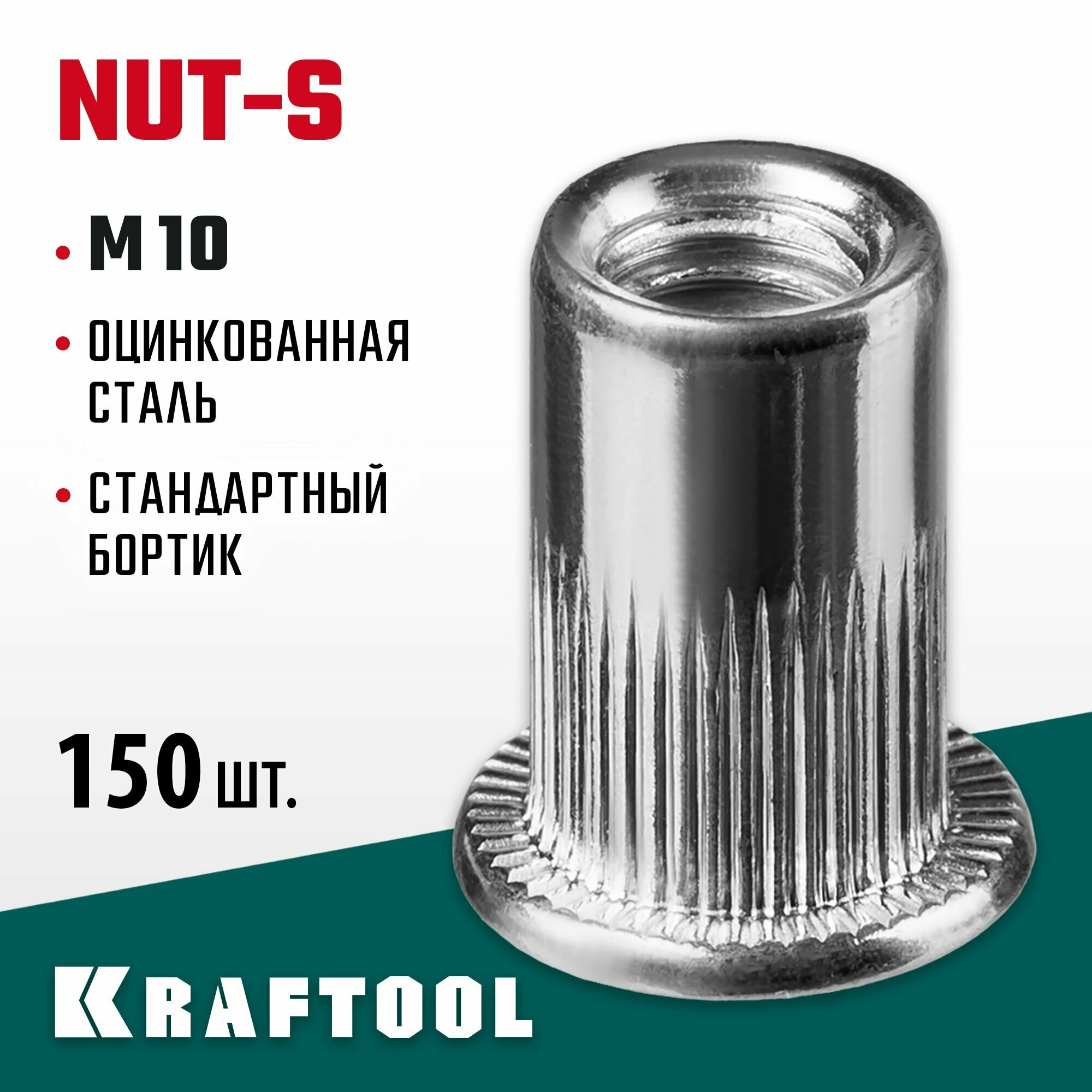 KRAFTOOL Nut-S М10, резьбовые заклепки стальные с насечками, 150 шт (311707-10)