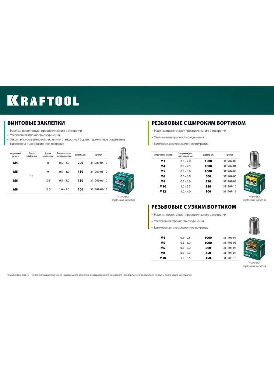 Стальные резьбовые заклепки Kraftool »