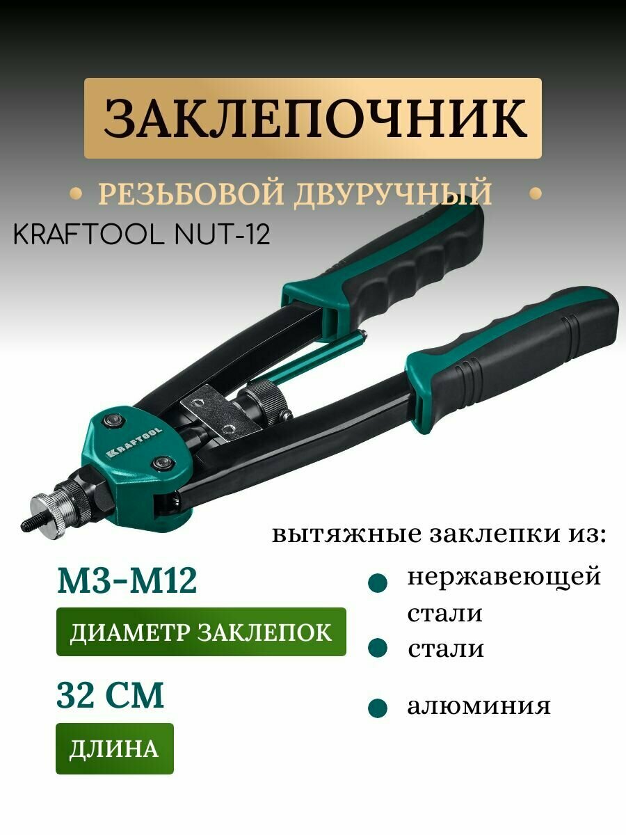Резьбовой двуручный заклепочник для резьбовых заклепок KRAFTOOL Nut-12 (31183)