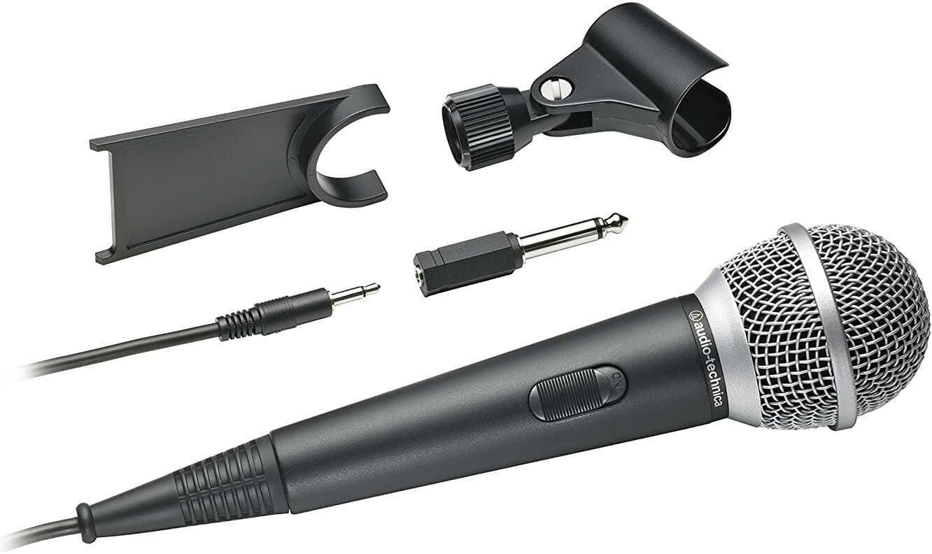 Динамический однонаправленный вокальный/инструментальный микрофон. Частотный диапазон 80 - 12000 Гц. Несъемный кабель длиной 5 метров заканчивается разъемом minijack 3.5 мм, в комплекте переходник на Jack 6,3 мм (1/4 TS). Микрофон применим для домашнего караоке, для озвучивания небольших площадок. В комплекте держатель на микрофонную стойку и настольная подставка. Вес микрофона без учета кабеля 150 г.