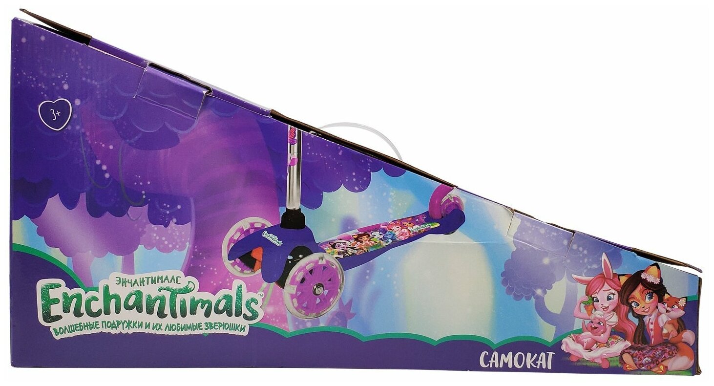 Самокат 1toy Enchantimals Трехколесный управление наклономим, с PVC светящимися колесами (разноцветный)