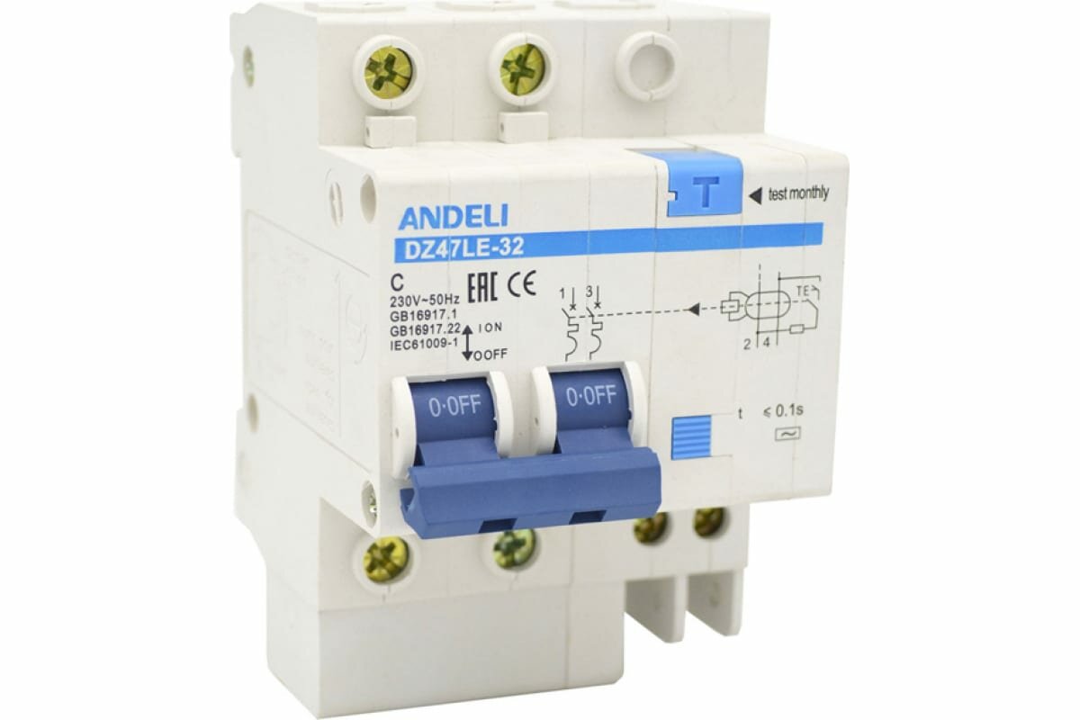 Сервис сравнения цен СкидкаГИД предлагает сравнить цены на товар «Дифференциальный автомат ANDELI Dz47le 2p 16a»