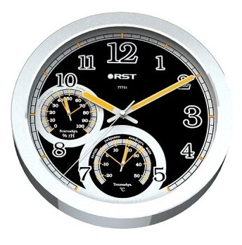 - это настоящая автономная домашняя метеостанция, которая, несомненно, придется по душе всем, кто привык держать абсолютно все под контролем. Основными достоинствами такого устройства является наличие в конструкции еще двух элементов, которые делают представленную модель многофункциональным прибором это встроенный термометр и гигрометр, которые достаточно точно проинформируют вас о состоянии температуры и относительной влажности в помещении. При этом такие часы выполнены в современном стильном дизайне серебристого цвета, а в ночное время суток стрелки и деления циферблата светятся желтым цветом.