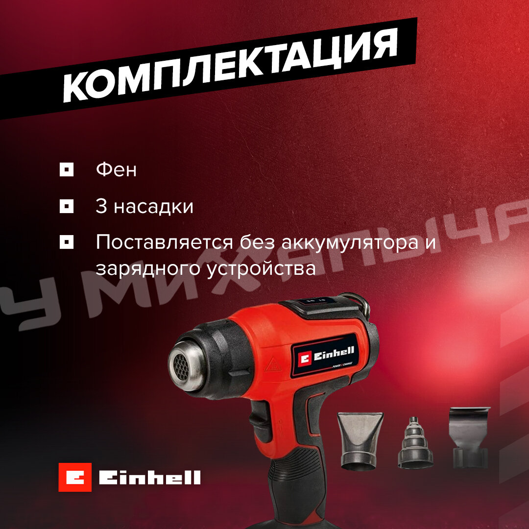 Беспроводной аккумуляторный промышленный фен Einhell TE-HA 18 Li-Solo относится к высококачественной линейке инструментов Power X-Change. Фен имеет 2 температурных режима, отражаемых на светодиодном дисплее. Защита от перегрева обеспечивает безопасность во время работы. Механический фиксатор сопла позволяет легко извлекать сопло редуктора, широкоструйное сопло и сопло рефлектора, входящие в комплект поставки. Плоская подставка промышленного фена удобна для стационарного использования. Для удобства работы и хранения на фене предусмотрен откидной металлический крючок. Эргономичная ручка с мягкой накладкой обеспечивает надежный захват во время работы. Поставляется без аккумулятора и зарядного устройства!
