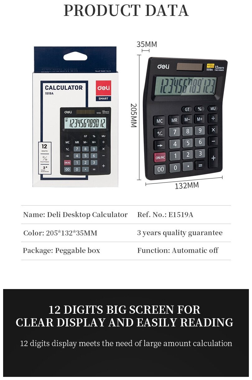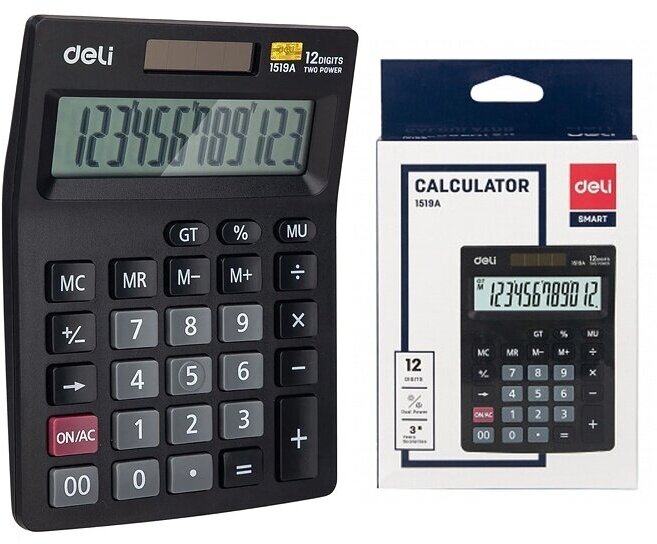 На сегодняшний день товар «Калькулятор DELI 12-разрядный черный E1519A» можно купить с кешбеком в 4 магазинах: Onliner BY, 21vek BY, E2e4online, ОГО!