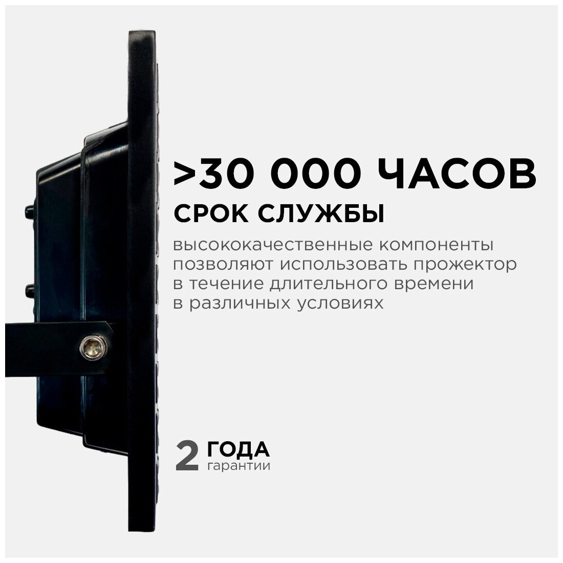 - Срок службы не менее 30 000 часов позволит на несколько лет забыть о надобности замены светильников.