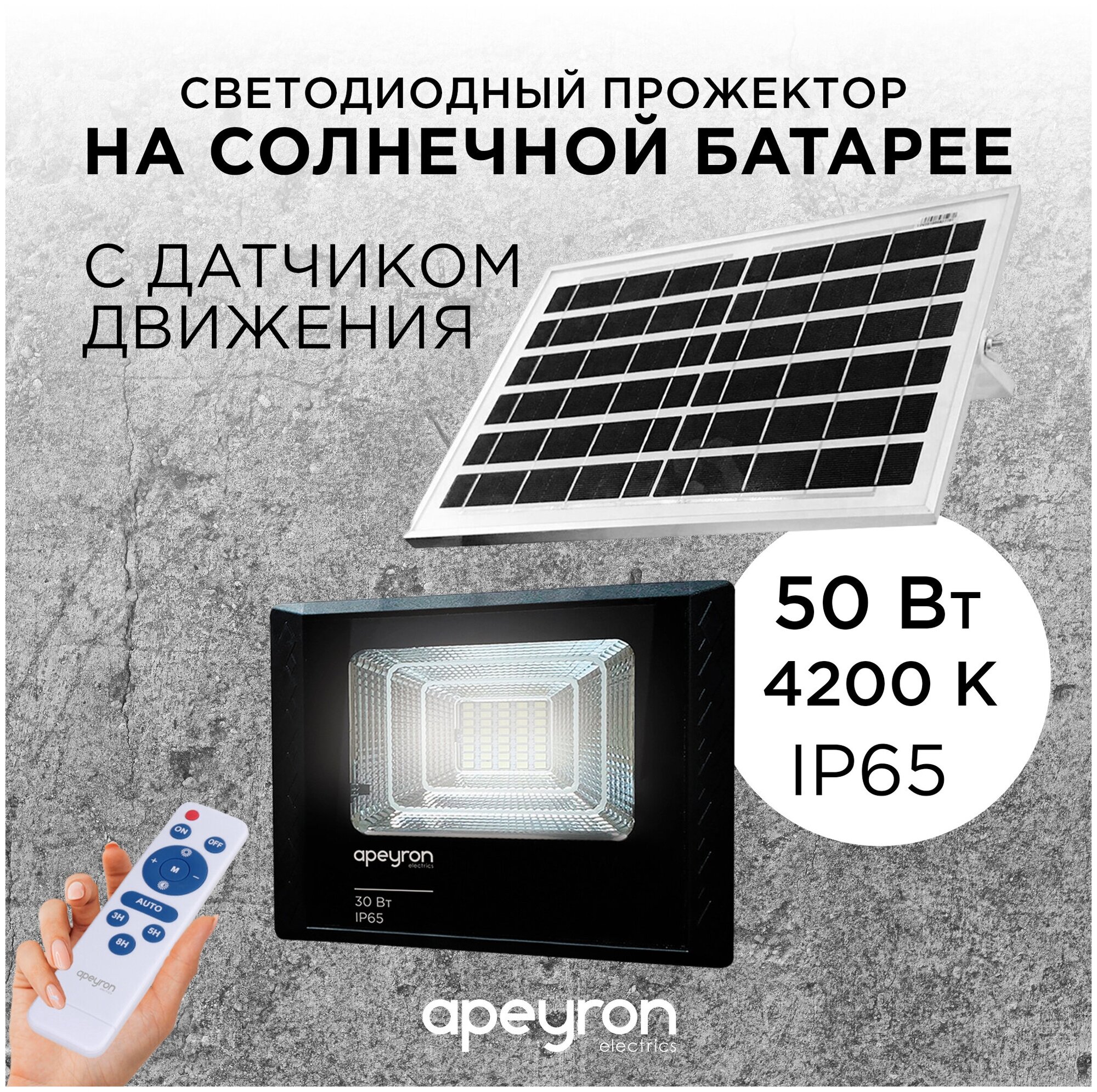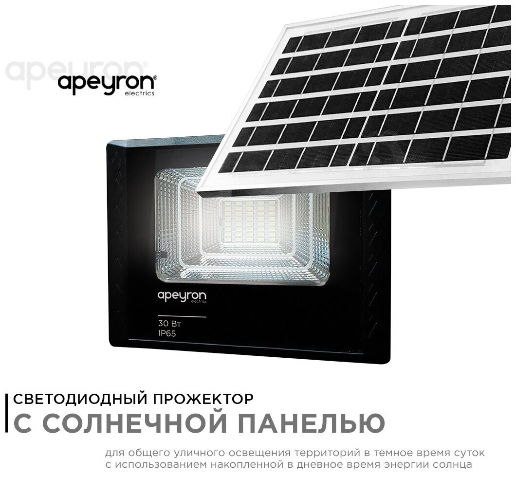 Прожектор светодиодный c солнечной панелью 6В 30Вт 360Лм 4200K Apeyron Electrics