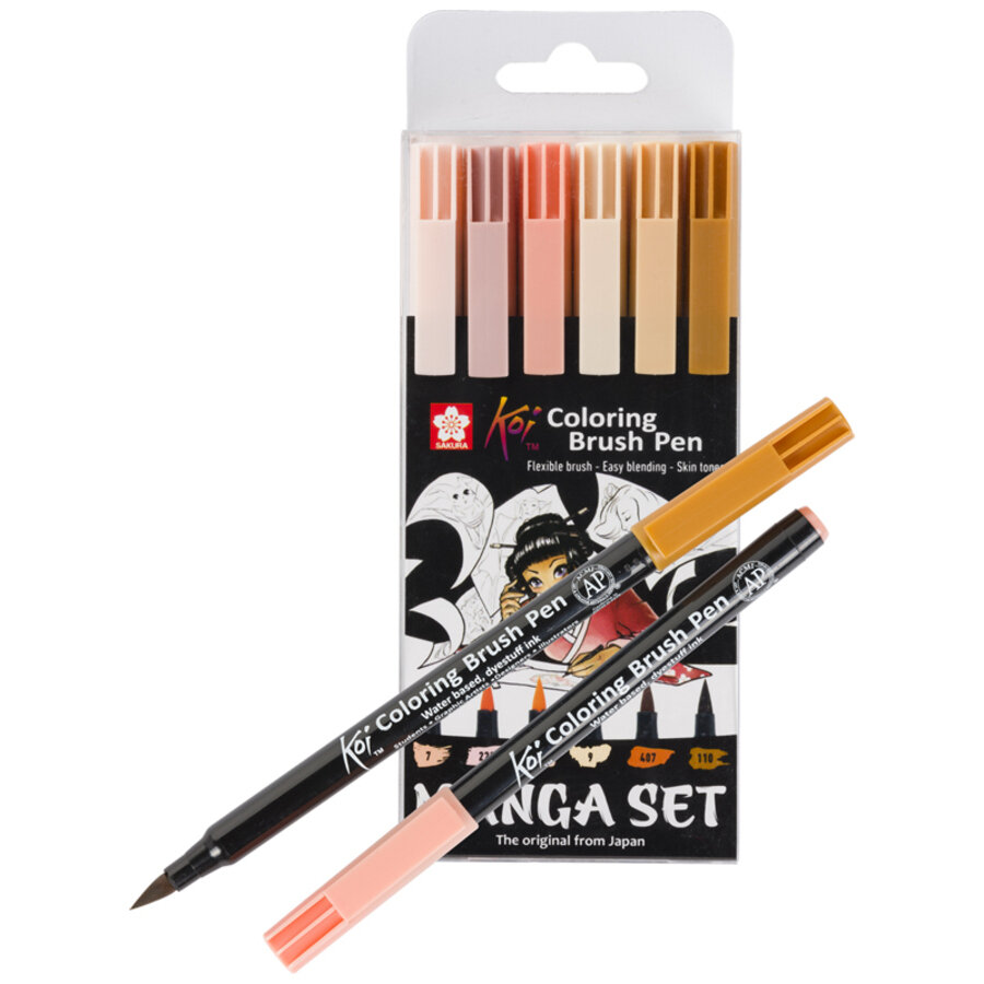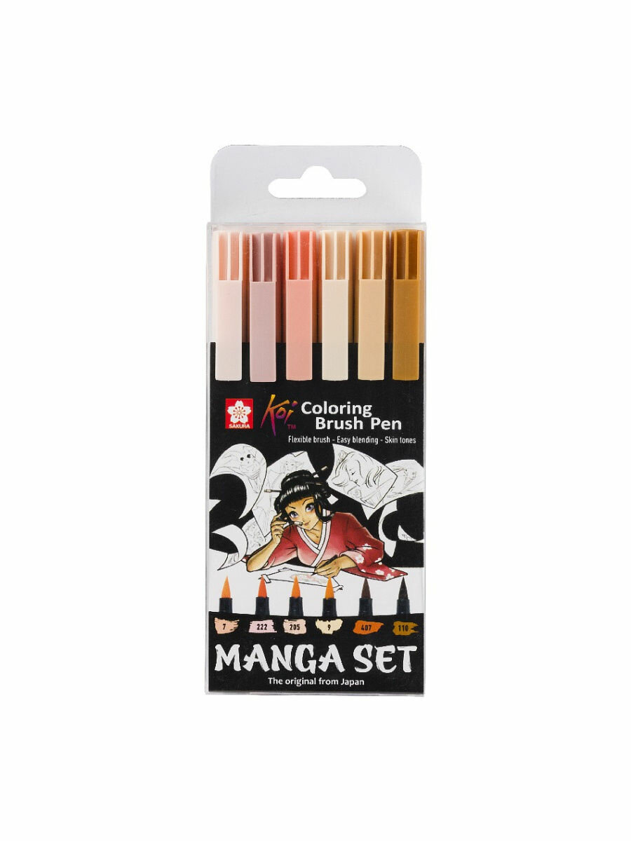 Набор маркеров акварельных Sakura Koi Manga кисточка 6 цветов в блистере. Идеальное цветовое сочетание для рисовки лиц и кожи.
