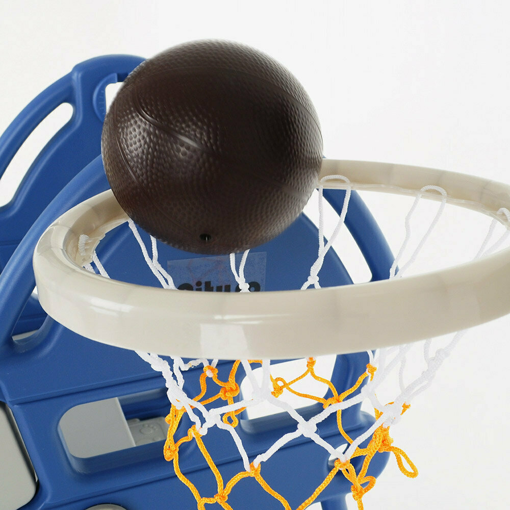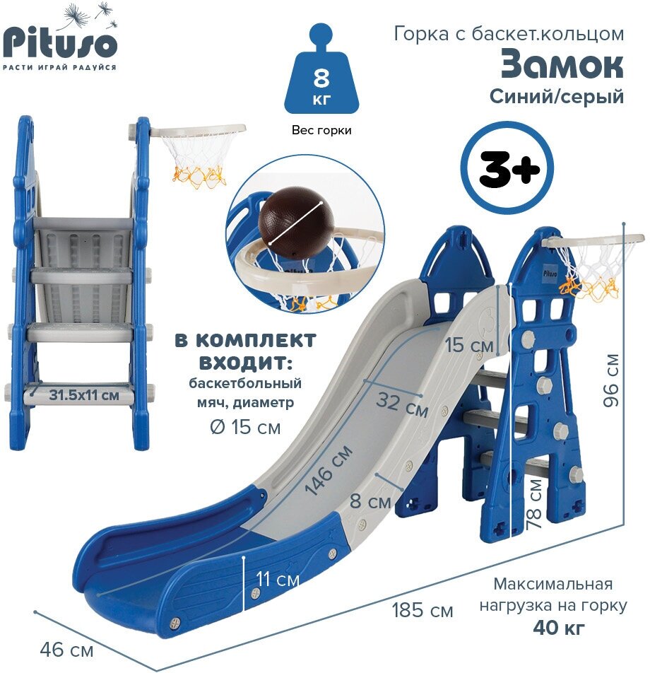 Особенности:- изготовлена из пластика;- специального крепления к земле не имеет;- для домашнего использования;-устойчивая привлекательная форма;- баскетбольное кольцо;- баскетбольный мяч 1 шт. (диам.15 см) в комплекте;- закрытые ступени (защита ребенка от проваливания ножек);- легкая и быстрая сборка;- максимальная нагрузка – 40 кг.Рекомендовано для самостоятельного использования детям старше 3-х лет с соблюдением весовых ограничений.Детям младше 3-х лет, но которые научились уверенно сидеть, возможно использование строго под присмотром взрослых!Размер (ДхШхВ): 185х46х96 смРазмеры упаковки (ДхШхВ): 103х22х53 смВес: 8.5 кгВес в упаковке: 9.5 кгВнимание! Производитель оставляет за собой право менять рисунок и цвет элементов конструкции без изменения характеристик и функционала товара.
